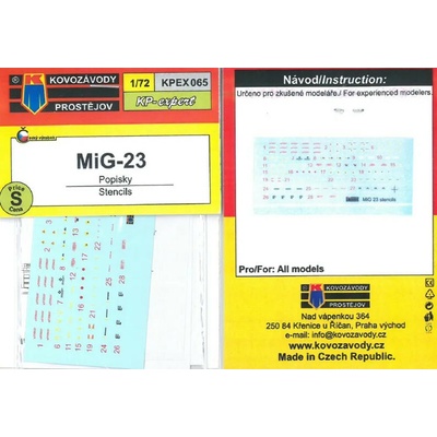 1:72 MiG-23 popisky Kovozávody Prostějov. Plastikové modely, Obtisky a lepty.
