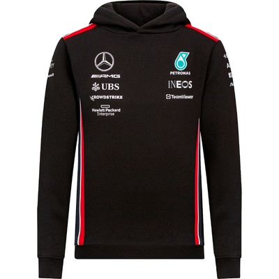 Nová týmová mikina s kapucí Mercedes AMG F1 nošená jezdci a členy týmu v sezóně Formule 1. Černá mikina s kapucí Mercedes AMG F1 doplněná logy sponzorů, prvky Tommy Hilfiger....