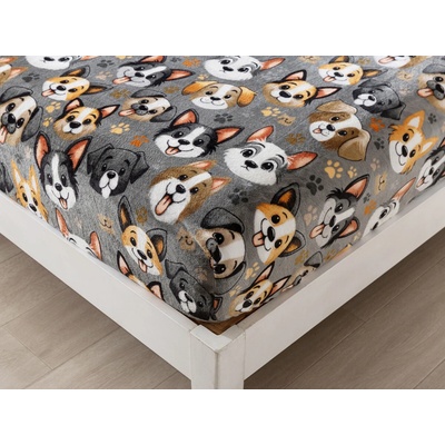 Prostěradlo 140x200 cm DOGS pro hřejivé objetí mikroplyše se záplavou pejsků Mikroplyšová prostěradla vás krásně zahřejí již na první dotek a vzor pejsků na šedé v podkladu...