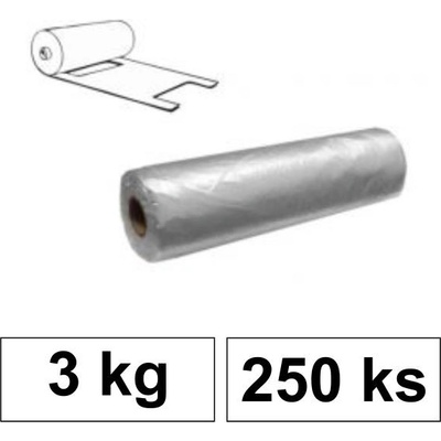 Tašky mikrotenové v roli 3 kg, 250ks. Transparentní, síla fólie je 6 mikronů, balení obsahuje 250 kusů, materiál HDPE.