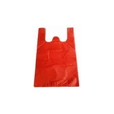 Balení 50 ks.Taška mikrotenová HDPE - nosnost min. 15 kg červená v rozměru 28+16 x 50 cm - extra silná - tloušťka materiálu cca 16 mikrometrů.