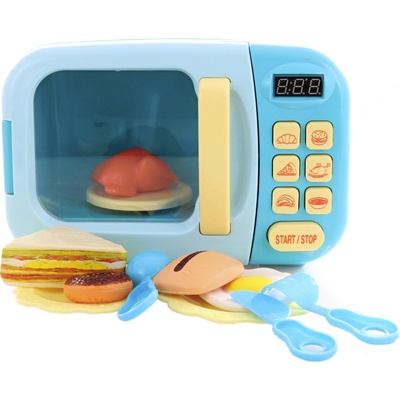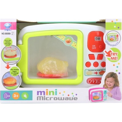 Dětská mikrovlnná trouba na baterie. Trouba vydává reálné zvuky a svítí, a stejně jako při ohřívání, se točí její vnitřní část. Uvnitř mikrovlnné trouby je kuře, které po...