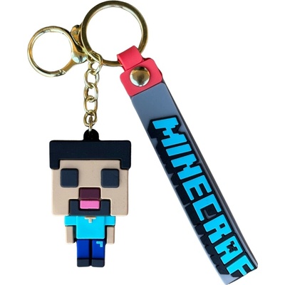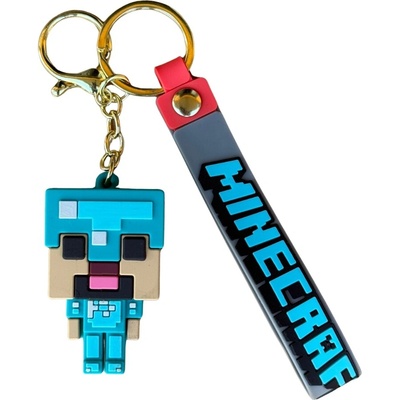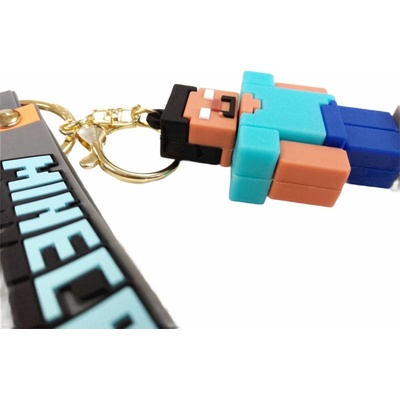Přívěsek na klíče s Poutkem Minecraft Steve s šedo-modrým poutkem.