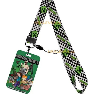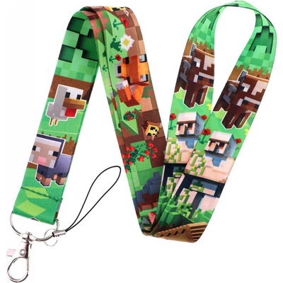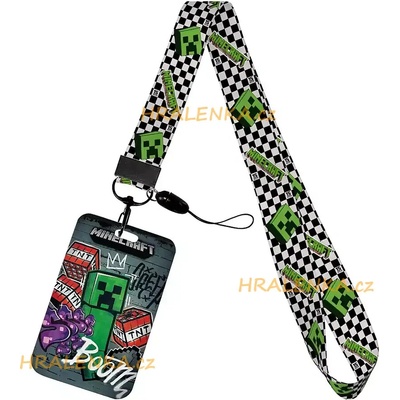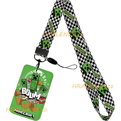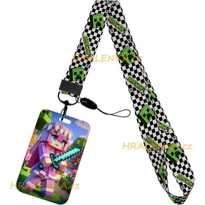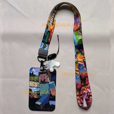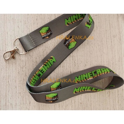 Klíčenka s karabinou na krk. Potisk po celé ploše. Stylový doplněk pro fandy hry Minecraft.