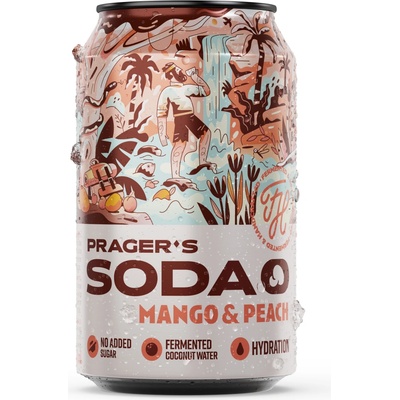 PRAGER´S Soda Mango&Peach 330ml Lehká, funkční limonáda na bázi fermentované kokosové vody s nízkým obsahem cukru a přirozeně doplněnými elektrolyty pro lepší hydrataci. ✅...