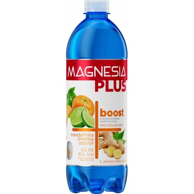 Magnesia Plus Boost mandarinka, limetka, zázvor - jemně perlivá ochucená minerální voda s obsahem přírodního hořčíku, obohacená o vitamíny a výtažky z rostlin Potřebujete...