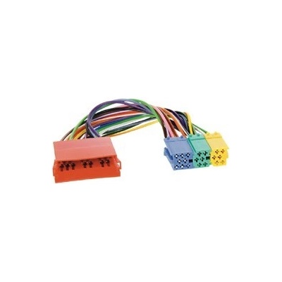 Mini ISO konektor propojovací kabel 252048 Kompletně osazený propojovací kabel s mini ISO konektorem plně osazeno 20 pinů rozdělený konektor do autorádia (zelená, modrá, žlutá)...