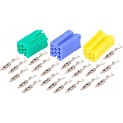 Zelený Mini ISO konektor 4carmedia 331441-2 Plastový mini ISO konektor zástrčka. Zelený. 6 pinů.