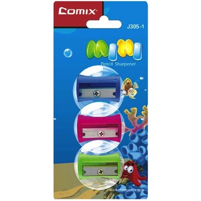 Ořezávátko 3ks Comix Mini J305-1. Pro ostré tužky a pastelky jako nikdy! Plastové ořezávátko s 1 otvorem bez odpadní nádobky v různých barvách.Vysoká pevnost ocele, trvanlivé...
