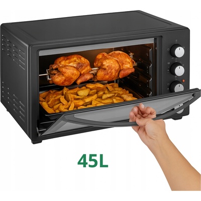 Pečící trouba. 45 l. Elektrická trouba s otočým rožněm a horkovzdušnou funkcí. Vnitřní osvětlení. 3 funkce pečení (horní, spodní a horní se spodním, + možnost horkovzdušné...