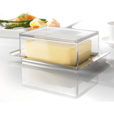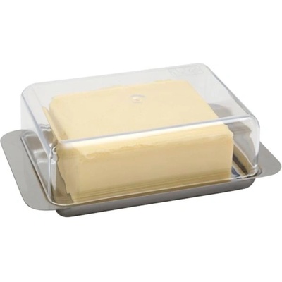 Nerezová dóza na máslo APS s těsnicím plastovým víkem o rozměrech 16x9,5 cm. Tato hranatá máslenka od předního výrobce kuchyňských potřeb APS je ideální pro skladování másla....