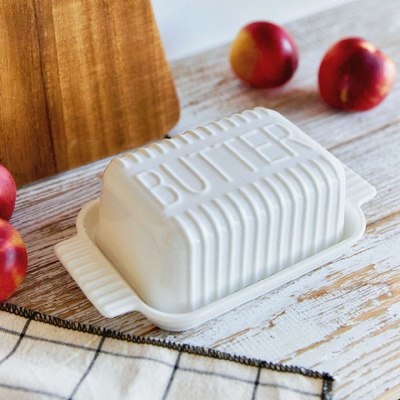 Keramická máslenka určená pro máslo 250 gramů o rozměrech 14 x 11 x 10 cm. Perfektní pro skladování v ledničce, je ideální pro servírování a skladování másla. Máslo se dá bez...