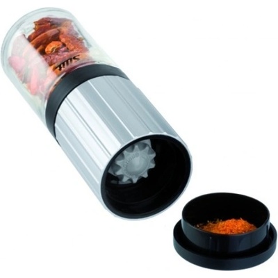 Mechanický mlýnek čerstvě naseká chilli papričky. Speciální nerezový řezací mechanismus pro rovnoměrné a jemné nasekání. Materiál: nerez 18/8 SS, sklo, plast. Rozměry: pr. 5,5 cm, v. 14 cm. Skleněná část vhodná do myčky.