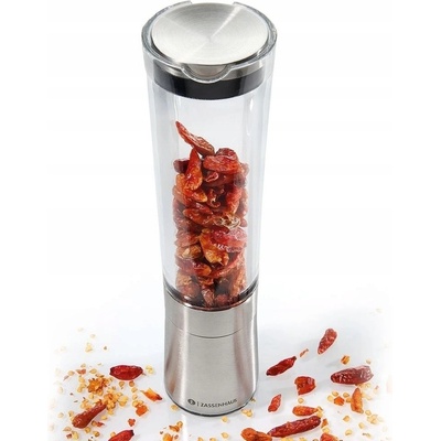 Mlýnek na chilli papričky z nerezu a akrylu. Vhodné na chilli papričky.Výrobce poskytuje 25-ti letou záruka na mlecí mechanismus. Ø 5 cm, výška 21 cm Již v roce 1867 začala Německá firma Zassenhaus vyrábět různé výrobky. Nejvyšší kvalitu materiálu použitého na mlecí...
