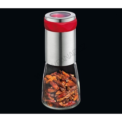 Mechanický mlýnek čerstvě naseká chilli papričky. Speciální nerezový řezací mechanismus pro rovnoměrné a jemné nasekání. Materiál: nerez 18/8 SS, sklo, plast. Rozměry: pr. 5,5...