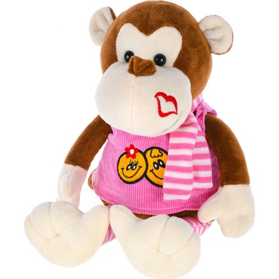 Mikro Trading Opice Janica plyšová 25 cm v šatech a se šálou na baterie česky mluvící