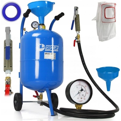 Mobilní tryskací jednotka, pískovačka 19l RIPPER Pískovací zařízení může být použito pro čištění povrchů, rekonstrukce, údržbu plechů, v dílnách atd. Pískovačka má redukční...