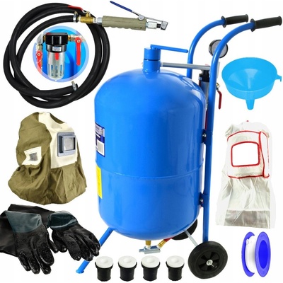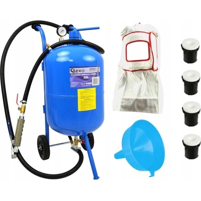Mobilní tryskací jednotka, pískovačka 38 litrů, s příslušenstvím Mobilní tryskací a pískovací jednotka (tzv. „pískovačka“) objemu 38 litrů značky Geko G02019 Tryskací zařízení...