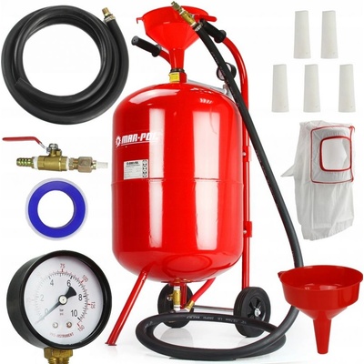 Mobilní tryskací jednotka, pískovačka 19l MAR-POL Pískovací zařízení může být použito pro čištění povrchů, rekonstrukce, údržbu plechů, v dílnách atd. Specifikace K renovaci...