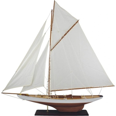 Dokonalá dřevěná replina plachetnice v decentním barevném provedení na podstavci o délce 85 cm a výšce 92,5 cm.Nádherně zpracovaný model plachetnice, který ozdobí obývací pokoj...