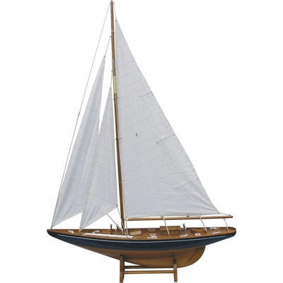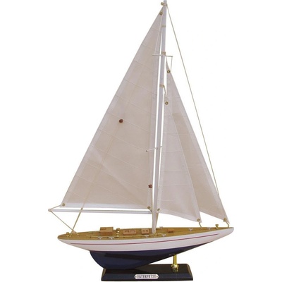 Dokonalá dřevěná replina plachetnice s modrobílým trupem a bílými plachtami na podstavci o délce 32 cm a výšce 49 cm.Nádherně zpracovaný model plachetnice, který provoní váš...