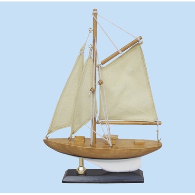 Detailně propracovaná dřevěná replina plachetnice ve světlých odstínech hnědé na podstavci o délce 15 cm a výšce 22,5 cm.Krásný model plachetnice, který bude velmi pěkně...