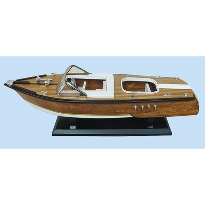 Krásný model motorové lodě v retro stylu na podstavci o délce 50 cm a výšce 15 cm.Dřevěná motorová loď může doladit interiér každého příznivce rychlosti, volnosti a větru ve...