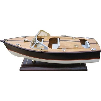 Krásný model motorové lodě v retro stylu na podstavci o délce 35 cm a výšce 13,5 cm.Dřevěná motorová loď bude zdobit stůl každého příznivce rychlosti, volnosti a větru ve...