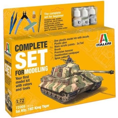 Model tanku King Tiger ke slepení. Měřítko: 1:72. Balení obsahuje barvy, štětec, tekuté lepidlo, obtisky, pinzetu, brousek a kleštičky.Kompletní sada pro začátečníky:Balení...