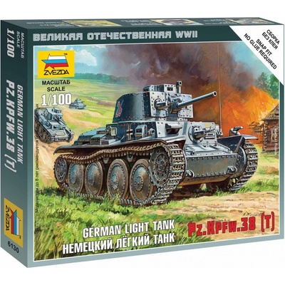 Obsah balení Plastikový model a návod. Charakteristika Plastikový model Zvezda 6130 – německý lehký tank Panzerkampfwagen Pz.Kpfw 38(t) v měřítku 1:100. Stavebnice obsahuje 7...