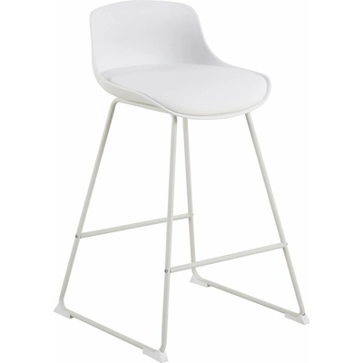 Barová židle s opěradlem Actona Tina je moderní barová stolička do kuchyně a k ostrůvku, která spojuje odolnou kovovou konstrukci s pohodlným sedákem potaženým bílou ekokůží....