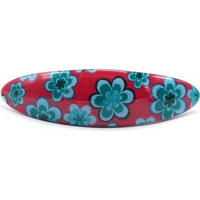 Spona na vlasy s potiskem květů. Spona má dvoustupňové kovové zapínání. Rozměr: délka spony 9,5 cm, délka zapínání 6 cm