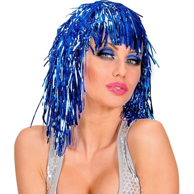 Paruka fóliová s ofinou modrá délka "vlasů" po ramena. Paruka od firmy Godan je určena ke kostýmům pro společenské akce, disko, párty, karneval či kabaretní show. Materiál...