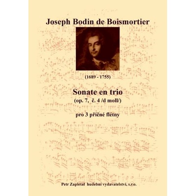 Nástrojové obsazení: flauto dolce I., II. (fl. traversi ad lib.), viola da gamba (violoncello), basso continuo. Grave, Vivace, Adagio, Allegro Ukázka: