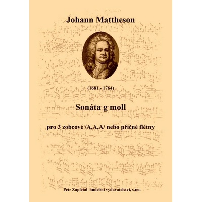 Nástrojové obsazení: flauto dolce I., II., III. /A,A,A/ (flauti traversi ad lib.). Prelude - Pocco Allegro, Fugue, Air - Adagio, Menuet Ukázka: