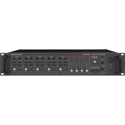 4-zónový mono mixážní zesilovač, 4 x 120 W výstupy, multi-zone. Přepínač umožňuje každému z 5 vstupů, být přiřazen k jednomu ze 4 výstupů. Tak je možné reprodukovat různé zdroje...