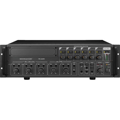 6-zónový mixážní zesilovač mono PA - 1 x 600 W - 6 zón, lze ovládat jednotlivě - Zvonění, nepřerušovaný zvuk a zvuk, zvuk tlumení zvuku, automatické ztlumení zvuku, vyzváněcí...