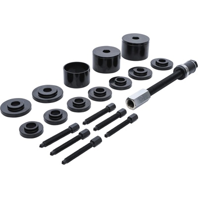 Tato sada slouží pro snadné nalisování a vylisování ložisek, pouzder, silenbloků, gufer apod.Univerzální sada pro většinu automobilů.Sada obsahuje 22 stlačovacích /...