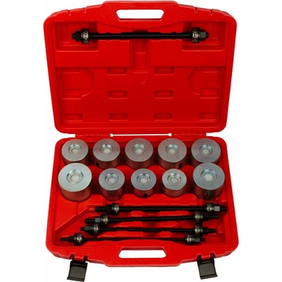 Tato sada slouží pro snadné nalisování a vylisování ložisek, pouzder, silentbloků, gufer apod.Univerzální sada pro většinu automobilů.Sada obsahuje 22 stlačovacích /...