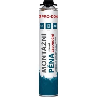 Profesionální montážní pěna značky PRO-DOMA s rozšířeným rozsahem pracovní teploty od -15 °C do 30 °C. Použití v průběhu celé sezóny určena pro nanášení aplikační...