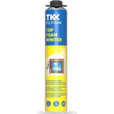 Pena pištoľová montážna zimná 750ml TKK - PU FOAM TOP FOAM WINTER. Jednozložková expandujúca polyuretánová pena na rýchlu a jednoduchú montáž okien a dverí a vypĺňanie otvorov...