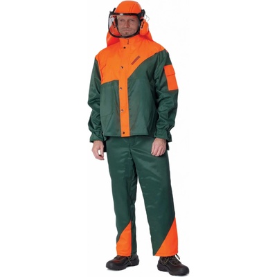 Pánský set protipořezové bundy a klahot s laclem určený pro práci v lese; krátký límec s fleecem z vnitřní strany; na levé straně náprsní kapsa na zip; na pravé straně kapsa na...