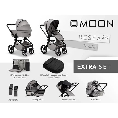Kočárek MOON PIÚ EXTRA Set obsahuje: podvozek MOON PIÚ + hlubokou korbu s matrací včetně paměťových adaptérů + sportovní sedačku včetně paměťových adaptérů + pláštěnku +...