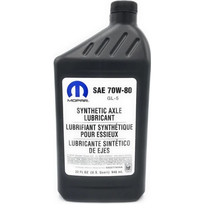 Mopar olej do diferenciálu 70W80. Norma: GL-5 J2360 MT-1 Balení: 946 ml (1 quart) OEM: 68227765AA