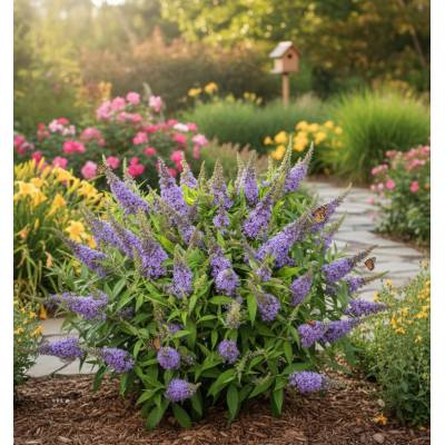 Moderní zakrslá odrůda komule, která vyniká bohatými lila až fialovými květy uspořádanými do krátkých, hustých klasů. Kvete dlouho – od léta až do podzimu – a je mimořádně atraktivní pro motýly, včely i další opylovače. Díky malému vzrůstu je ideální do menších zahrad,...
