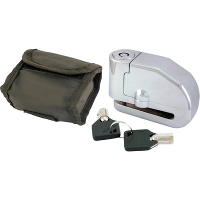 Zámek na kotouč v praktickém pouzdře. Alarm začne při pohybu dost slušně "ječet". - dva klíče - poudro z pevné tkaniny - průměr uzamykacího trnu 6 mm - určeno pro...