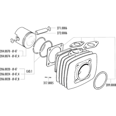 Náhradní sada těsnění válce Polini 50ccm. Sada těsnění válce je vhodná pro motory Piaggio / Derbi D50B0.