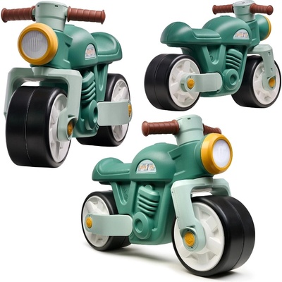 Dětská motorka, která má silné plasty, kvalitní materiály a zpracování. Jezdí vpřed i vzad – ovládá se přepínačem na nádrži a nožním pedálem na stupátku. Při nesešlápnutém pedálu tah motoru nahrazuje brzdu. Motorce svítí světla a samozřejmě nechybí zvukové efekty....