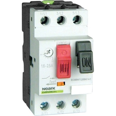 Noark 108101 Ex9S32A 1.6A Průmyslová motorový spouštěč jmenovitý proud Ie 1.6 A, rozsah vypínacího proudu Ir 1.0 – 1.6 A, zkratový proud Ii 20 A. Manuální motorové spouště...