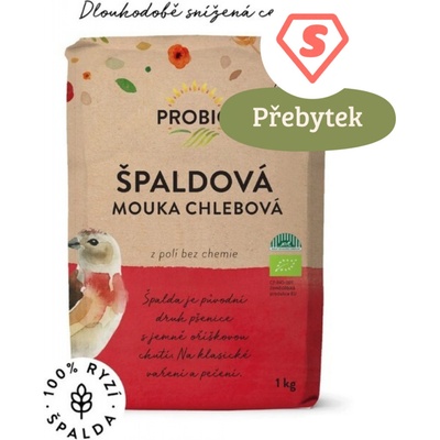 PROBIO - Mouka špaldová chlebová BIO Špaldová chlebová mouka v biokvalitě je hladká a tmavá. Užitečná pro snadnější pečení vašeho domácího chleba. Je vhodná pro pečení chleba v...